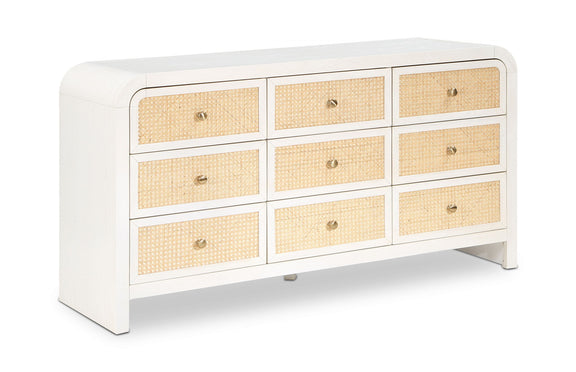 Introduce a touch of elegance and comfort to your bedroom by incorporating the Siena Dresser into your decor. The natural cane drawers and stunning ash veneer finish create a striking contrast that exudes charm and sophistication. The dresser is constructed from Ash wood, ensuring both durability and longevity. Its sleek and modern design makes it an ideal addition to any contemporary bedroom aesthetic. Experience the perfect blend of functionality and style with the Siena Dresser.
