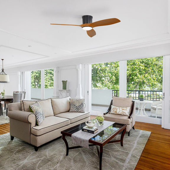 Smart Ceiling Fan With Remote Control, 3 Blades, Dimmable LED Light, Reversible DC Motor - Black