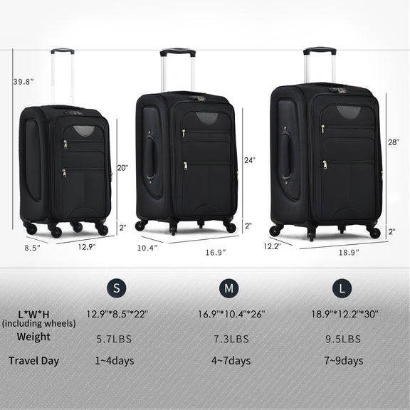 Premium Fabric: In order to meet stringent standards of the tourism product industry, this set of luggage is manufactured with high-quality fabric -- 610D fabric and this luggage have been rigorously tested. The 24"&28" suitcase is also equipped with an expansion layer to provide more space.