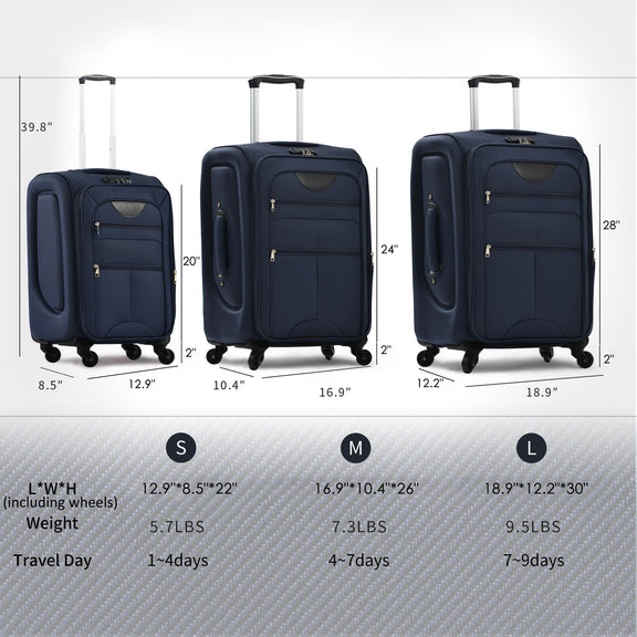 Premium Fabric: In order to meet stringent standards of the tourism product industry, this set of luggage is manufactured with high-quality fabric -- 610D fabric and this luggage have been rigorously tested. The 24"&28" suitcase is also equipped with an expansion layer to provide more space.