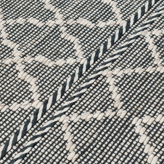 Choose sustainability with this classic rug featuring both a diamond and lattice pattern. Woven from 100% recycled fibers, this rug brings bold color statements making it equally beautiful in an indoor or outdoor setting.