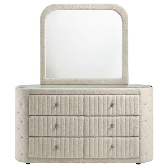 Sonya - 6-Drawer Upholstered Bedroom Dresser With Mirror - Ivory