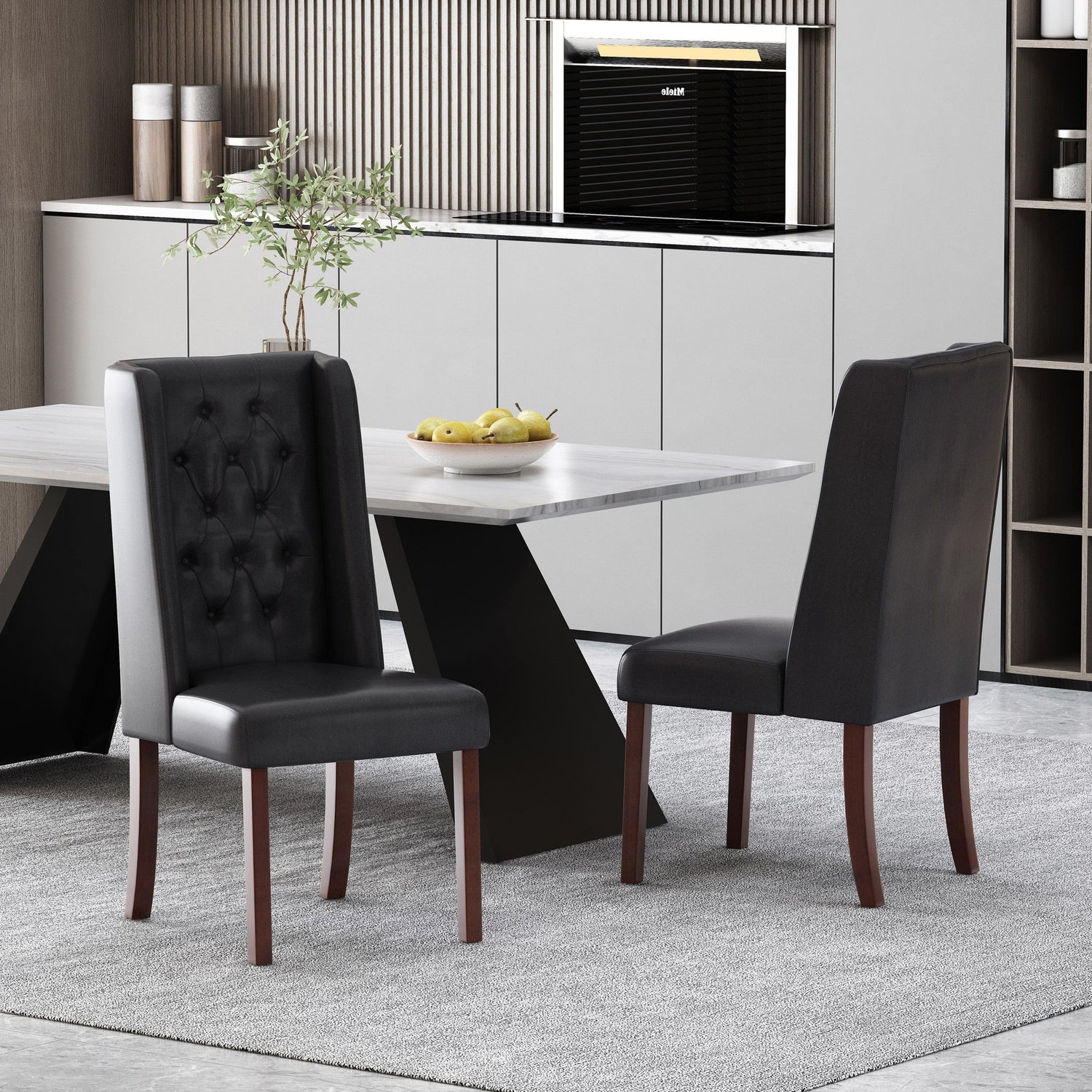Elegant Tufted Dining Chair (Set of 2) With High Backrest - Dark Brown