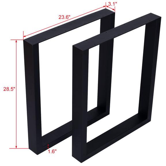 Square Table Legs 28X 24", Wide Metal Table Legs, Heavy Duty Steel Desk Legs Table Leg Dining Table Legs Coffee Desk Leg (Set of 2) - Black