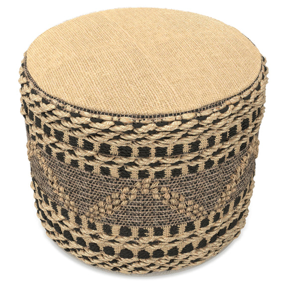 Stella - Round Woven Pouf - Natural / Black