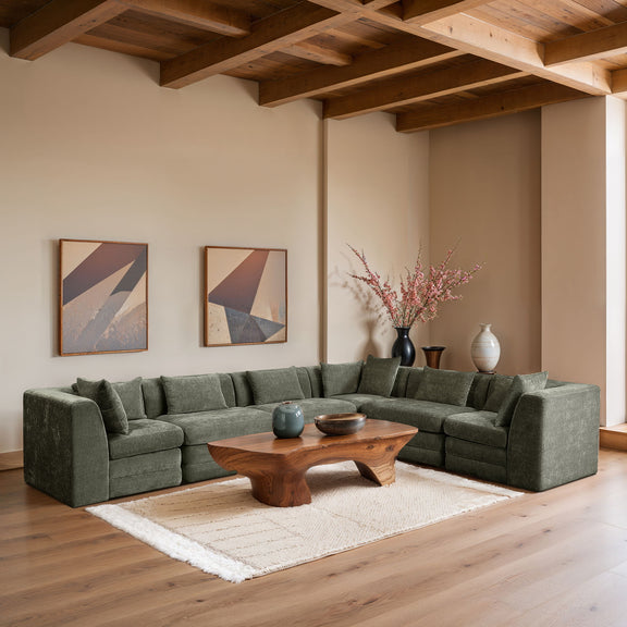 Stellar - 6 Piece Chenille Fabric 152" Upholstered Modular Sectional - Green