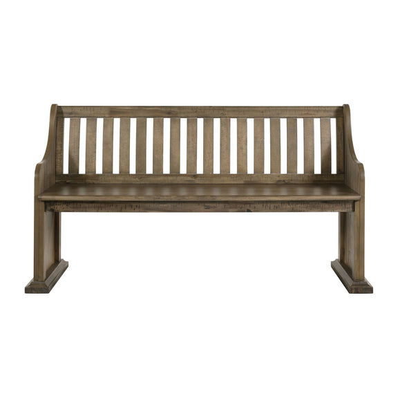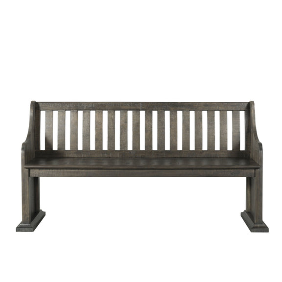 The Stone Pew Bench brings refined style and warm design to your dining area. Constructed of wood solids and veneers, this gives your dining area a distinguishable look. The vertical slat back style gives this pew bench a new twist on dining benches. Accessorize this bench with decorative pillows to match the seasons. Also, this bench is an ideal partner for a standard height dining table.