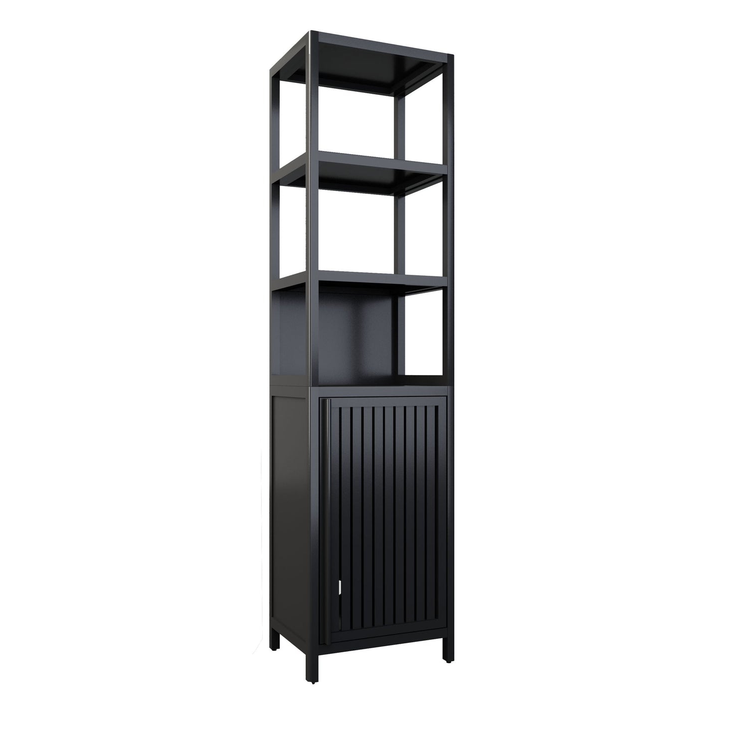 Storage Tall Slim Cabinet With Shutter Door And 3 Tier Shelves - Natural Bamboo, 64.76 Inches - Black