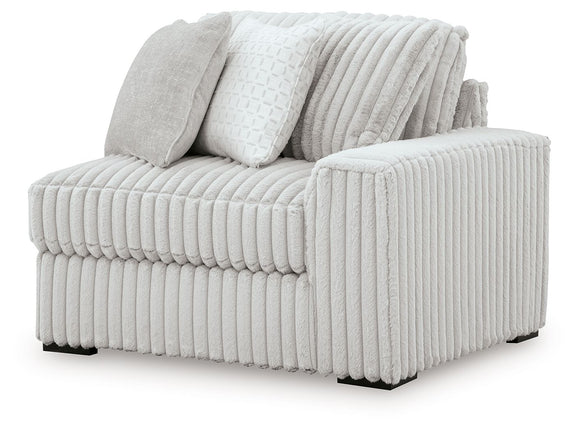 This right-arm facing corner chair is made with polyester upholstery. Pairs with other items in the series to make a sectional.