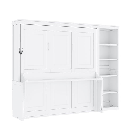 Queen Size Murphy Bed With Desk And Bookshelf - White
