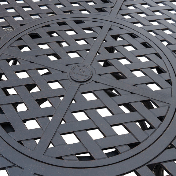 - Timeless Design: Elegant lattice-patterned seat back for charm in any setting. Lightweight and stylish aluminum construction complements any decor.