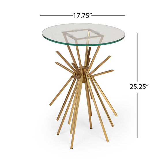 • Sunburst Design: Bold central motif stands out against the circular glass top for striking visual impact