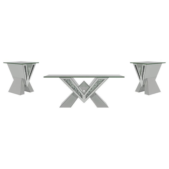 Taffeta - 3 Piece Mirrored Coffee And End Table Set - Silver