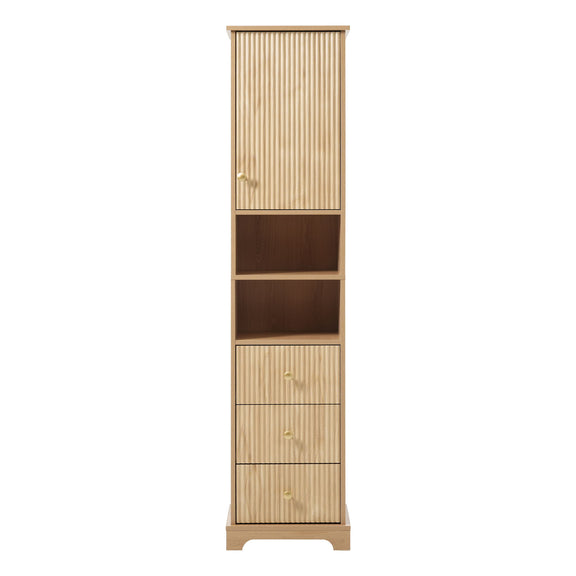 Tall Bathroom Cabinet With 1 Door, 3 Drawers, Open Storage - Wood