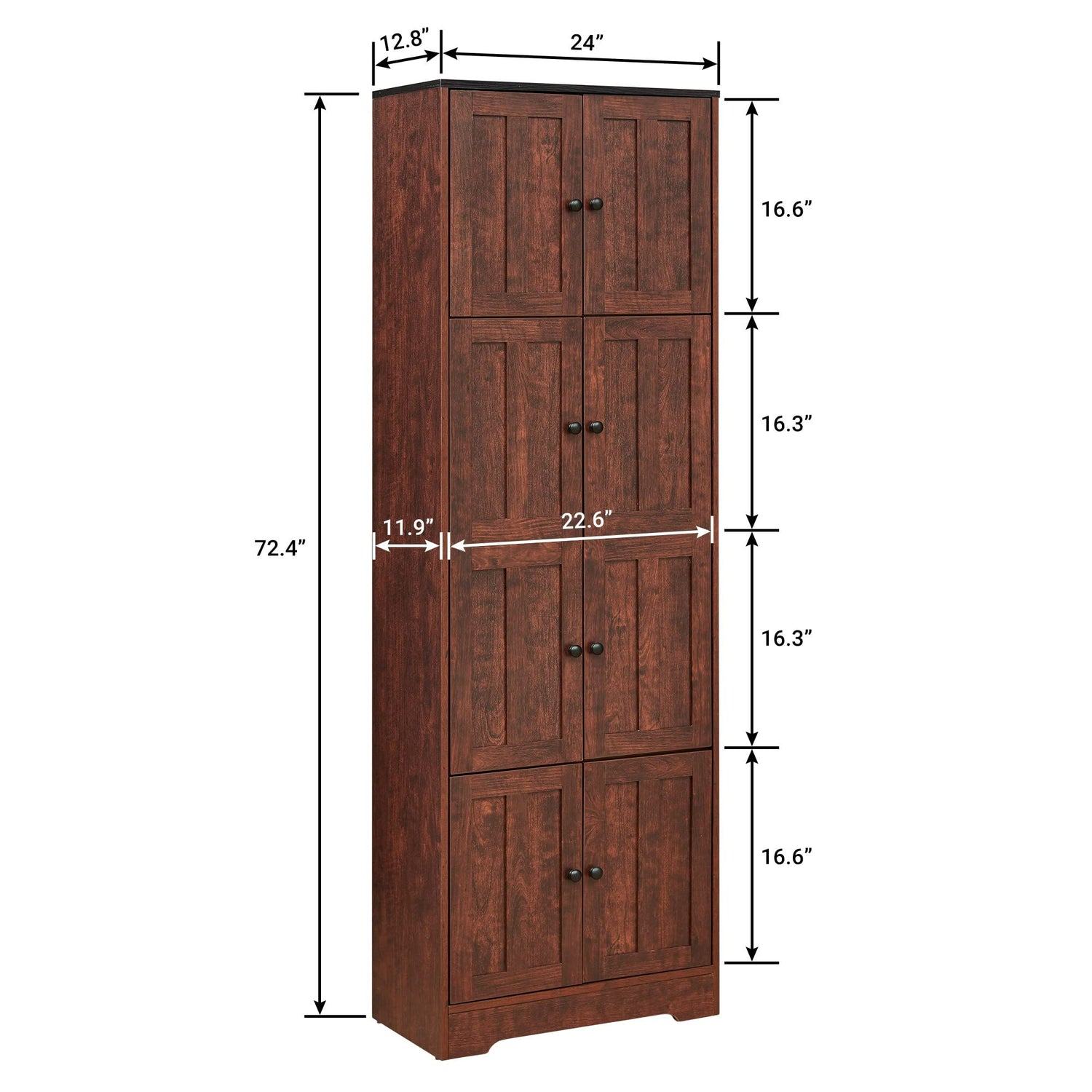 Tall Storage Cabinet With 8 Doors And 4 Shelves, Wall Storage Cabinet For Living Room, Kitchen, Office, Bedroom, Bathroom - Walnut