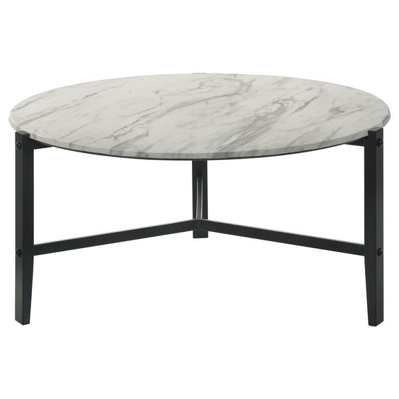 Tandi - Round Faux Marble Coffee Table - White And Black