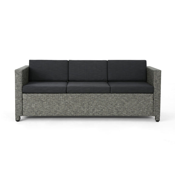 Thalassa - Outdoor 3 Seater Sofa With Removable Cushions And Steel Frame - Dark Gray / Black
