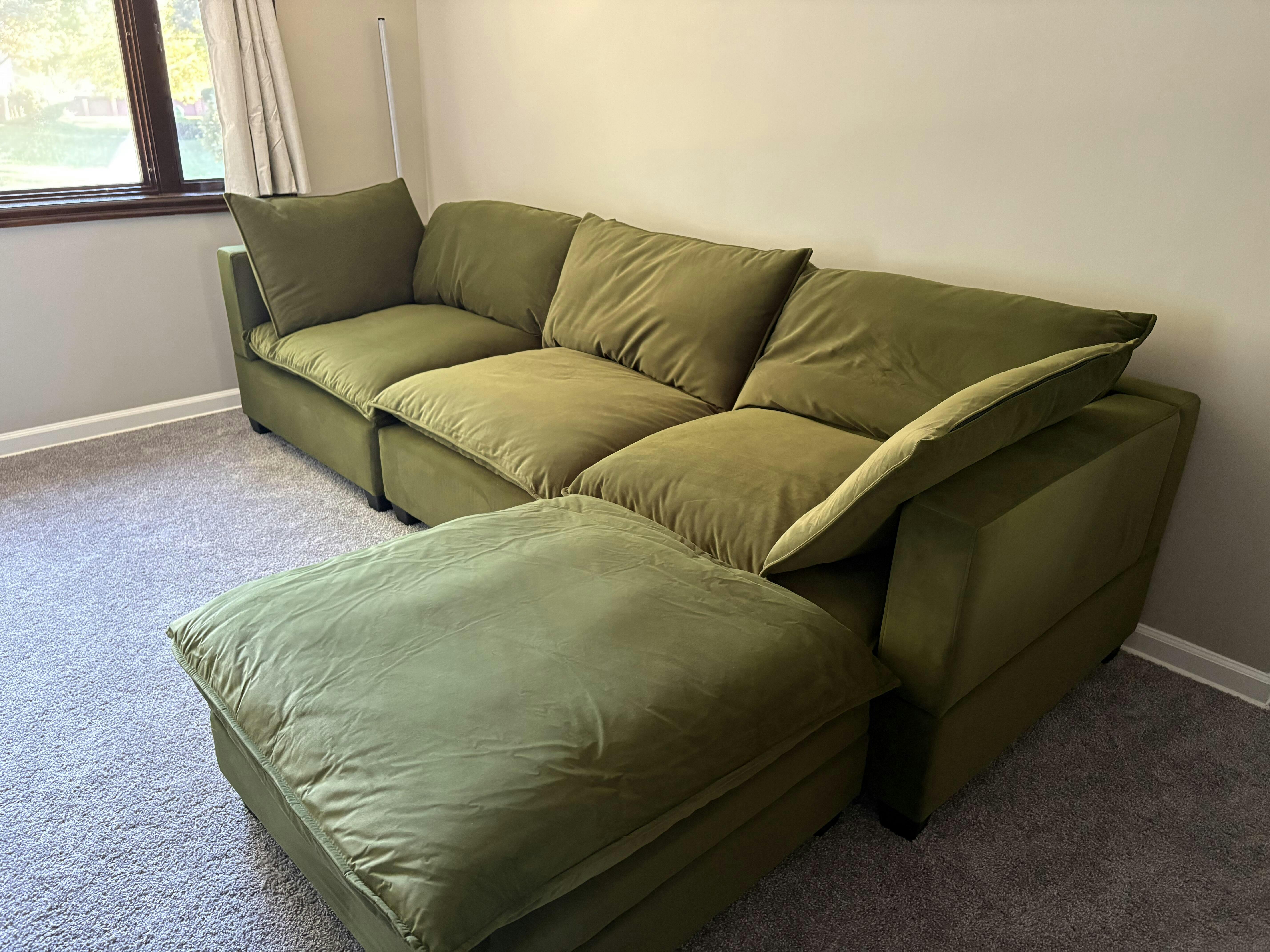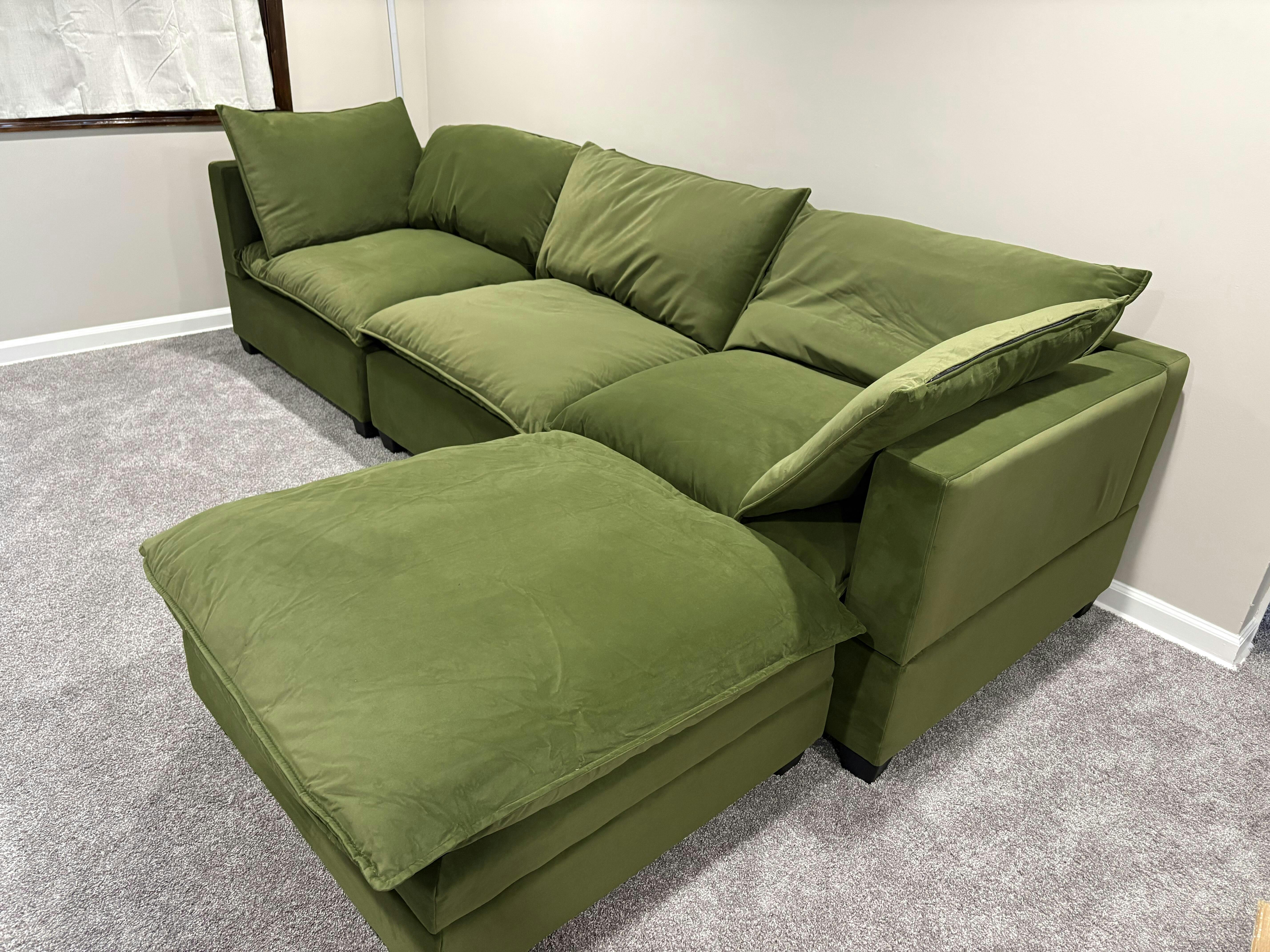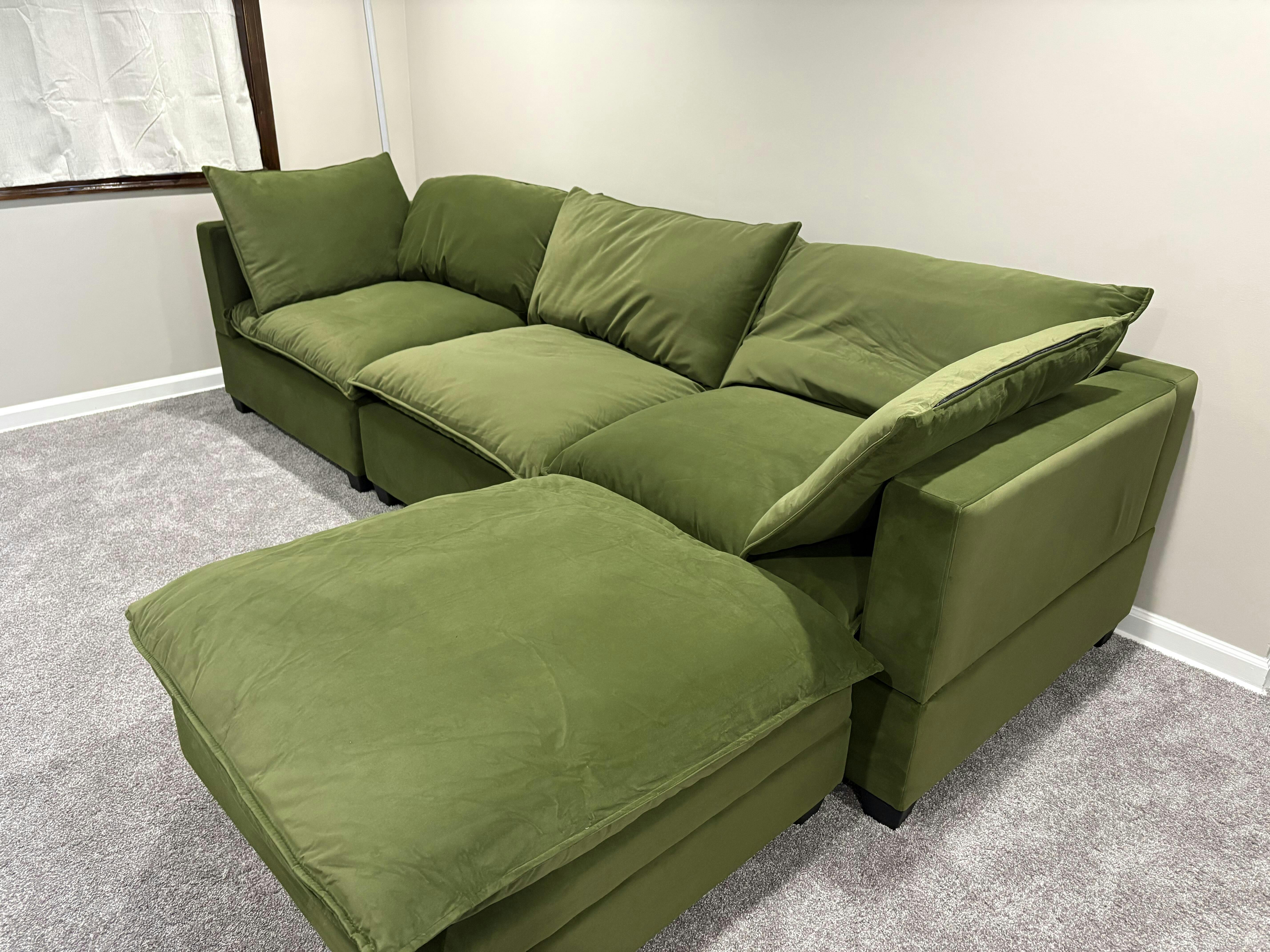 With delivery available, bringing home this luxurious Olive Velvet Cloud Sectional has never been easier. Elevate your living room with this exquisite piece and experience the epitome of comfort and style!