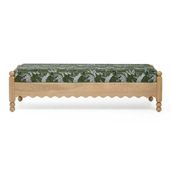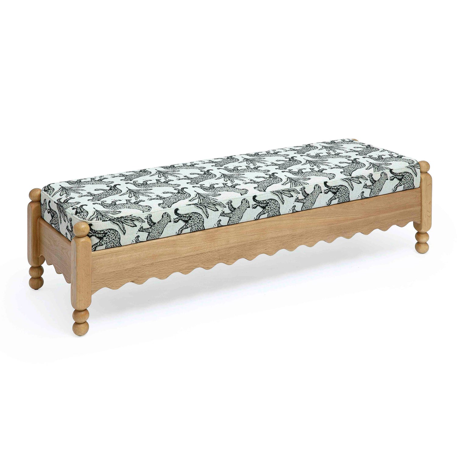 Bring out your wild side with the Thelma Leopard Jacquard Bench, where playful pattern meets everyday polish. Its bold jacquard easy-clean, durable upholstery and modern silhouette make it the ultimate statement piece, adding instant edge and luxe texture to any room. Fierce, functional, and impossible to ignore.