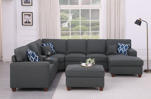 Tina - 8 Piece Upholstered Sectional With Ottoman - Dark Gray