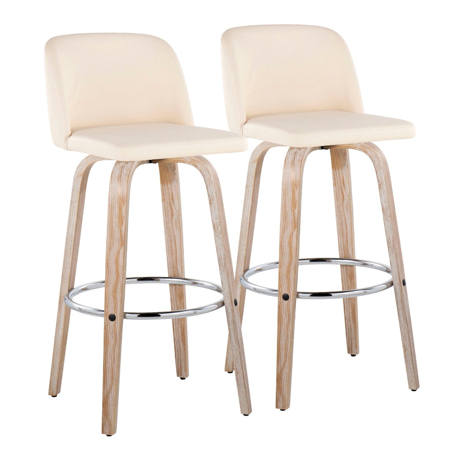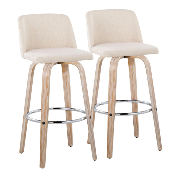 Toriano - Contemporary Fixed Height Barstool With Swivel With Round Footrest (Set of 2) - Whitewashed / Cream