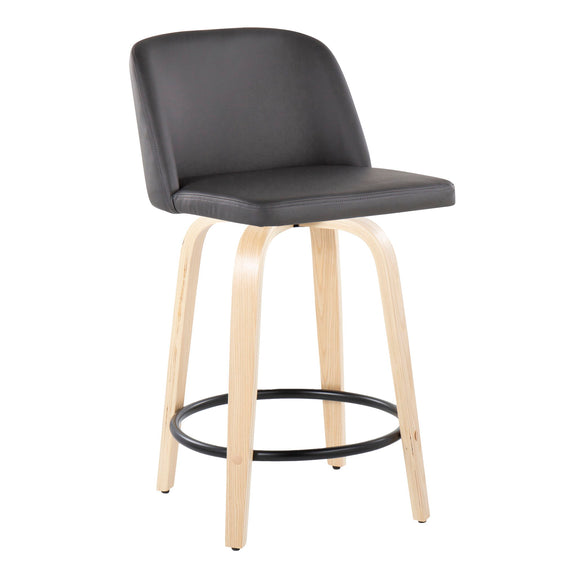 Toriano - Contemporary Fixed Height Counter Stool With Swivel, Round Footrest (Set of 2) - Gray / Black / Natural