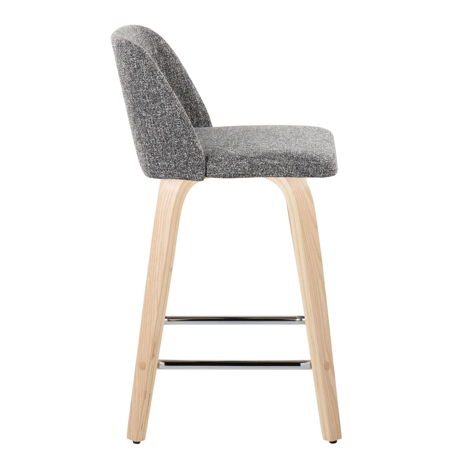 Toriano - Contemporary Fixed Height Counter Stool & Swivel And Square Footrest (Set of 2) - Natural / Gray