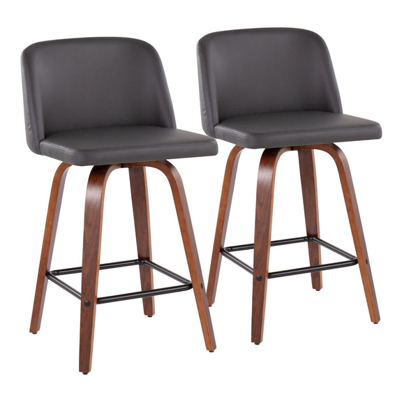 Toriano - Mid-Century Modern Counter Stool (Set of 2) - Gray / Walnut