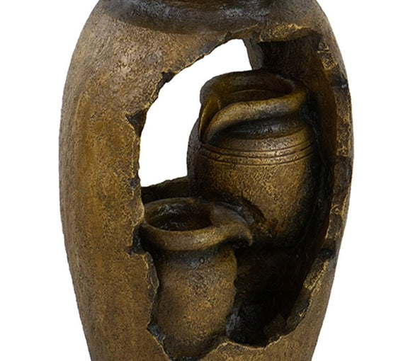 Traditional Rustic Decorative 3 Tier Water Fountain With Pot Design, With Light And Pump, For Indoor And Outdoor - Brown