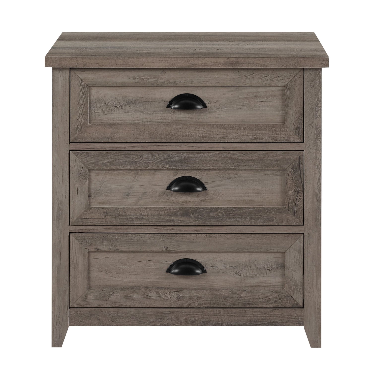 Transitional Farmhouse Framed 3 Drawer Nightstand With Cup Handles - Gray Wash