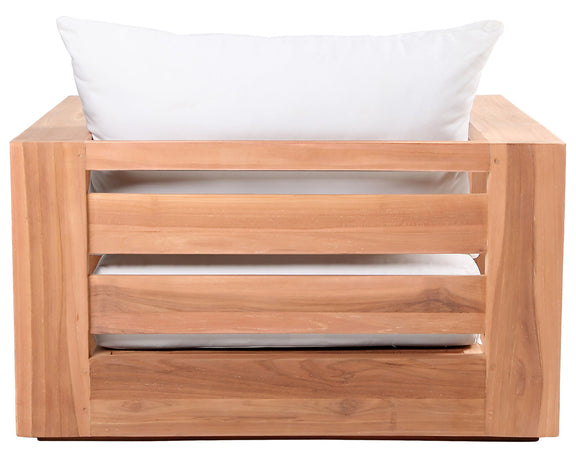 Make this Tulum teak outdoor patio chair the go to spot for relaxing and entertaining guest in your outdoor space. This chair features resilient water resistant fabric making it the perfect spot to rest your feet and enjoy the company of friends or family while you take in the sunrise. Teak construction makes it a tough addition for the patio or porch and gives it the longevity and durability it needs to weather the elements with beautiful ease. Pair it with other items from the Tulum collection for a look that impresses from every angle.
