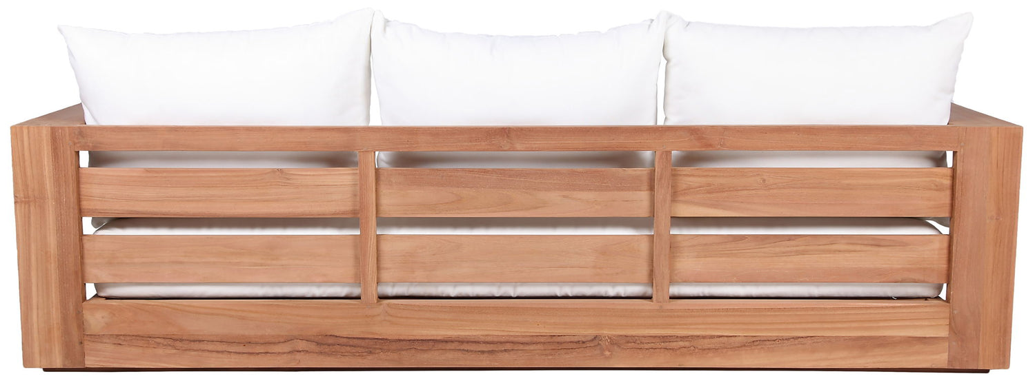 Make this Tulum teak outdoor patio sofa the go to spot for relaxing and entertaining guest in your outdoor space. This sofa features resilent water resistant fabric making it the perfect spot to rest your feet and enjoy the company of friends or family while you take in the sunrise. Teak construction makes it a tough addition for the patio or porch and gives it the longevity and durability it needs to weather the elements with beautiful ease. Pair it with other items from the Tulum collection for a look that impresses from every angle.