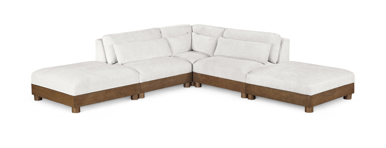 Turin - 120" Fabric Upholstered 5 Piece Modular Sectional - Cream