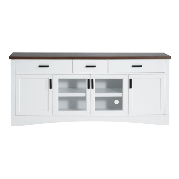 TV Console Stand, Glass Doors & Storage Drawers, Adjustable Shelves - White