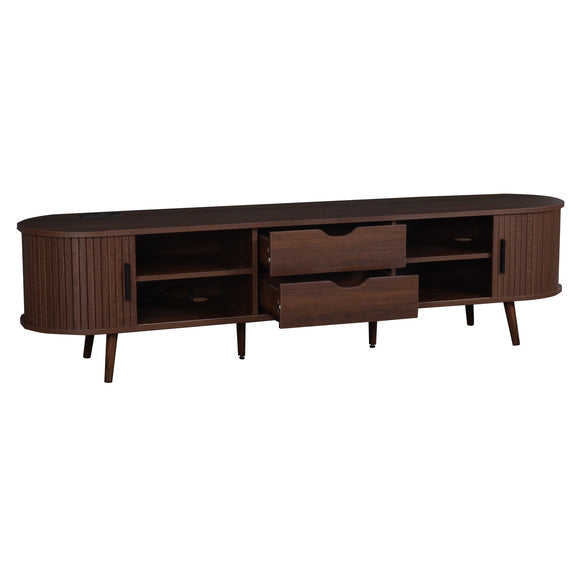 TV Stand For 70" TV, Console With Tambour Doors, Drawers And Built In Power Outlet - Dark Brown