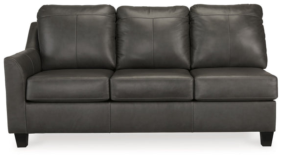 This left-arm facing sofa is made with a combination of 100% top grain leather and faux leather upholstery. Pairs with other items in the series to make a sectional.