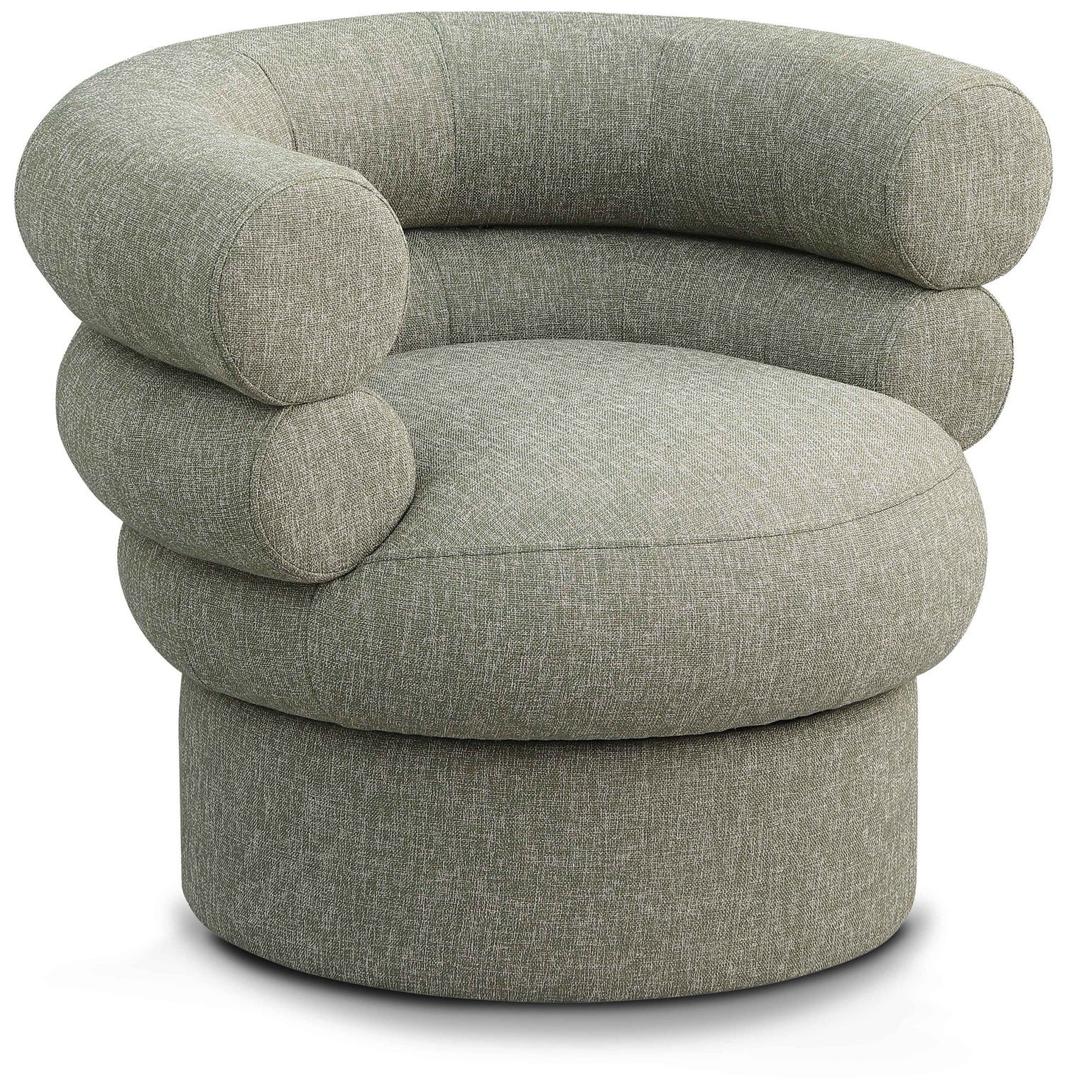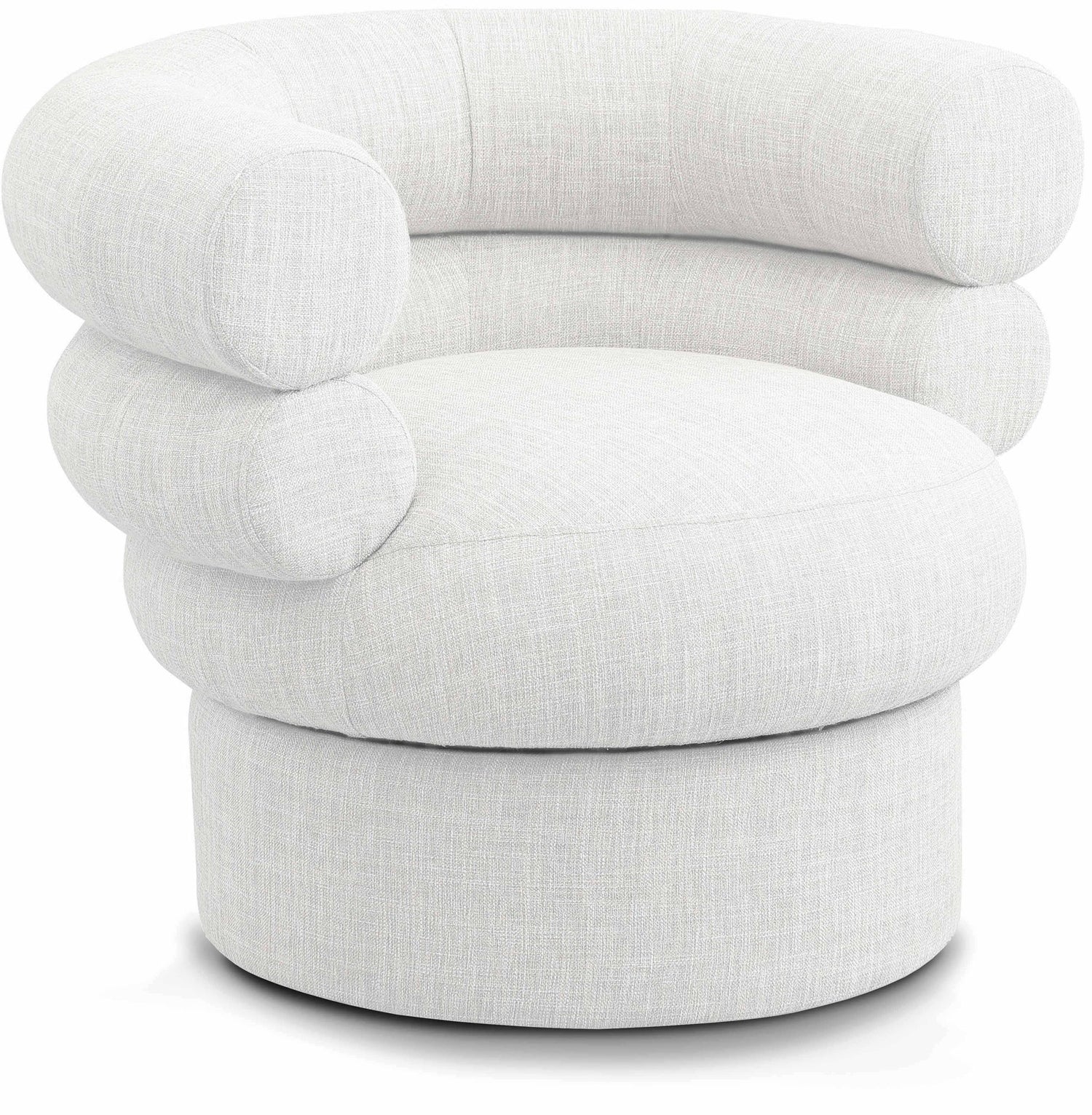 Create instant visual interest and add a comfy seating option to any space with this Valentina linen textured fabric swivel accent chair. The stacked back design is fun and modern, giving your room an upbeat (and stylish) vibe. This chair features mainly fabric with white weave details, thanks to its rich linen textured fabric upholstery. Deep channel tufting adds to its overall comforting look and feel in your living room, office, bedroom, or elsewhere.