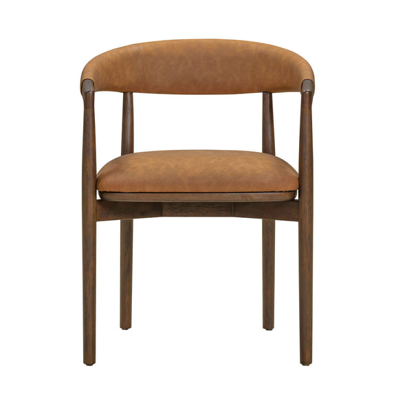 Sculpted with a tall, shelter-style back and a solid wood frame, the Vina Dining Chair blends comfort with striking form. Upholstered in wipe-clean vegan leather, it's built for high-traffic households yet feels refined, with supportive seating that invites lingering around the table.