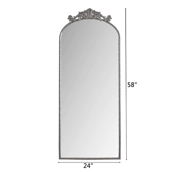 Vintage Arched Full Body Mirror, Wall Mounted For Living Room Bedroom - Antique Silver