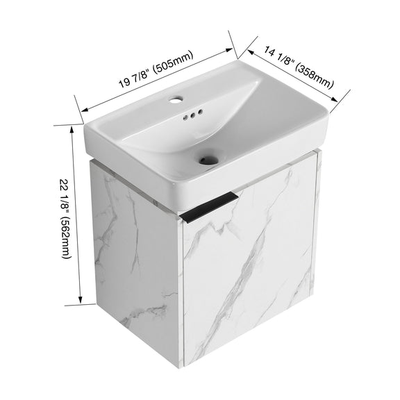 Wall Mounted Bathroom Vanity With Ceramic Sink And Storage Cabinet - Carrara White