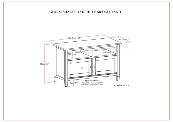 18.0"W x 42.0"D x 26.0"H - 59.5 lb