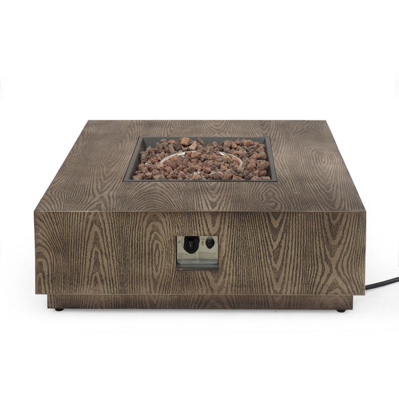 Wellington - Square Iron Fire Pit With Wood Pattern Design And 50, 000 Btu Output - Wood