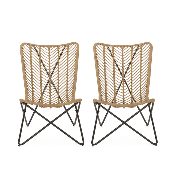 Wicker Chair With Geometric Cross Base, (Set of 2) - Light Brown