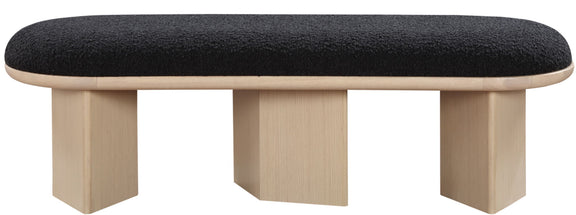 Immerse your entryway, living room, or bedroom in elegance with our stunning Wilshire boucle fabric bench. The rich solid wood natural oak finish triple-columnar base not only offers stability but also adds a touch of warmth to the bench's art deco design. Sink into the plushness of this bench, inviting you to relax in comfort and style. Place this pretty bench wherever you need extra seating - it's an ideal blend of form and function.
