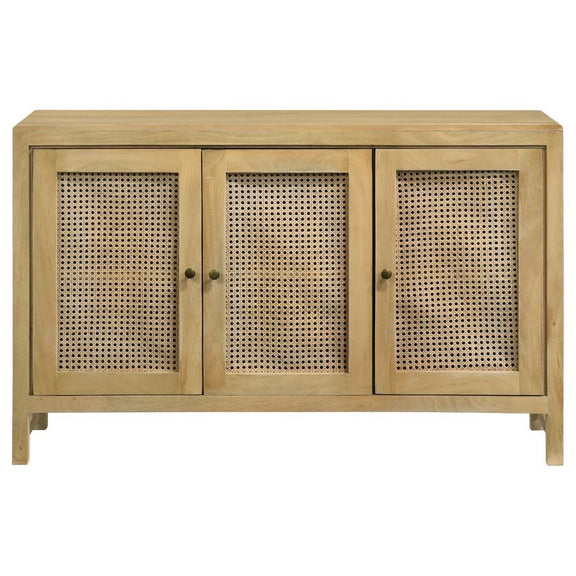 Zamora - 3-Door Wood Accent Cabinet With Woven Cane - Natural